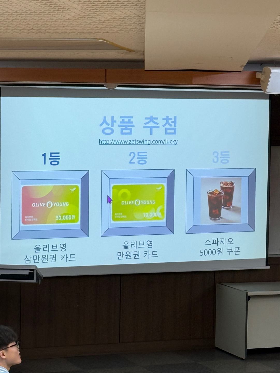마지막으로 소정의 경품 추첨으로 개강 총회를 마무리했습니다.