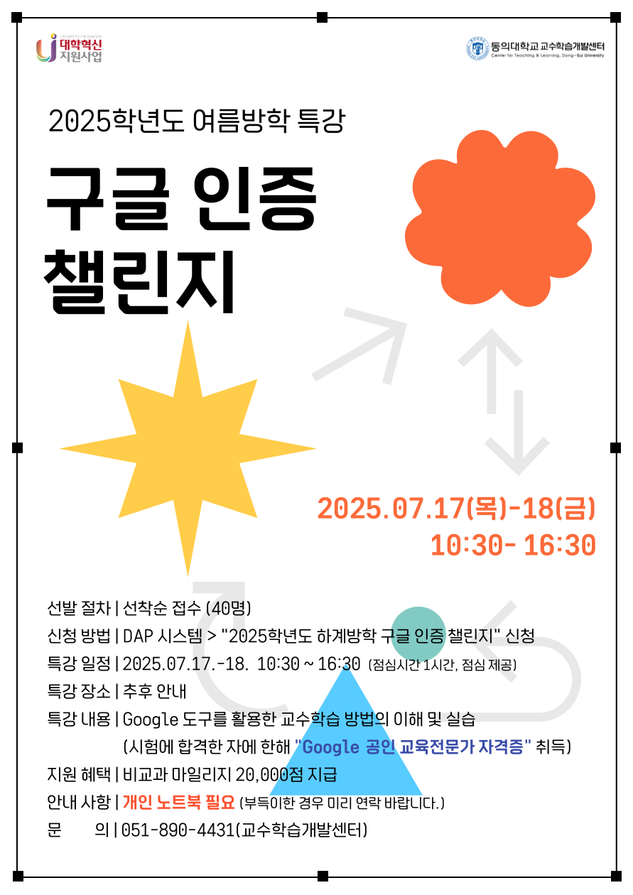다. 문의: 교수학습개발센터 이정아 선임연구원(☎4431, 15894@deu.ac.kr)