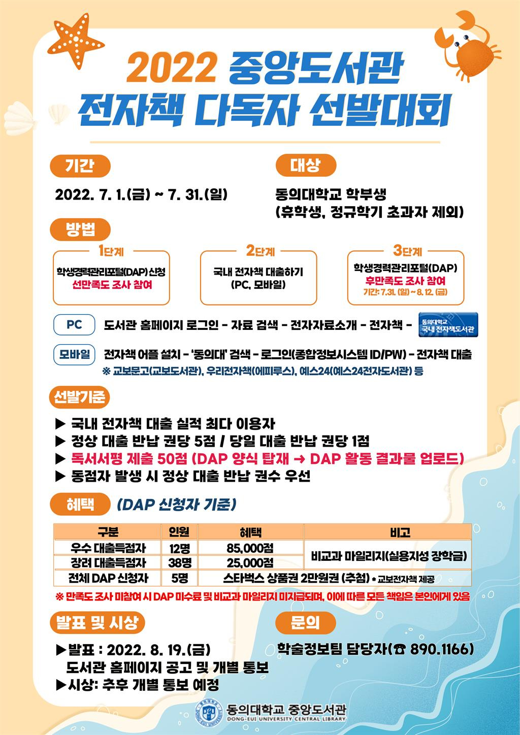 [중앙도서관] 2022 중앙도서관 전자책 다독자 선발대회 안내